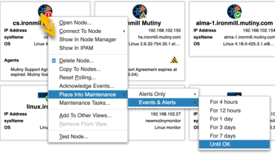 Maintenance Mode allows an Administrator to temporarily exclude monitored devices (nodes) from the Event/Alert process.